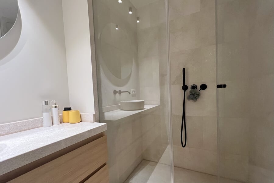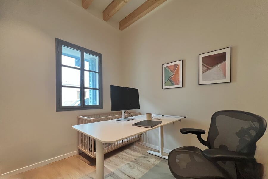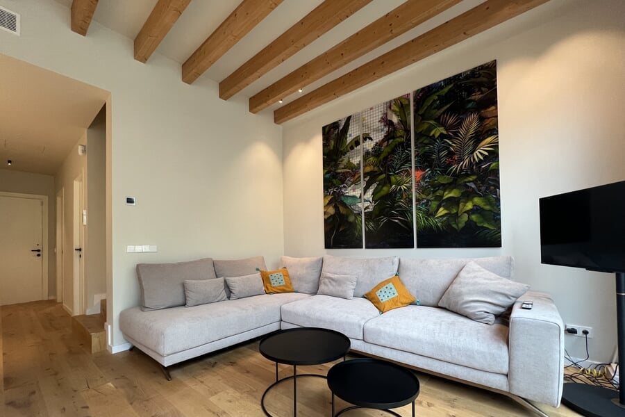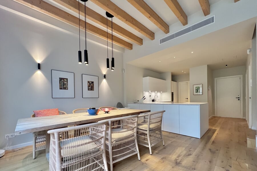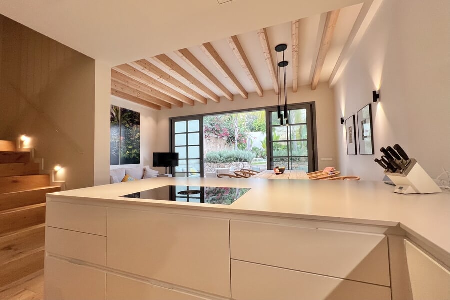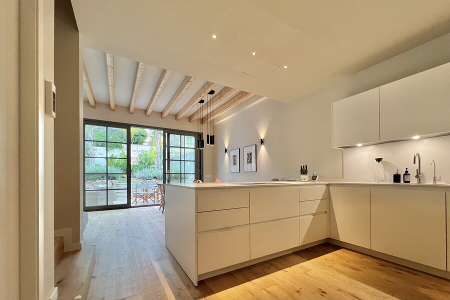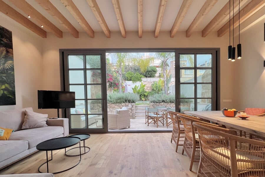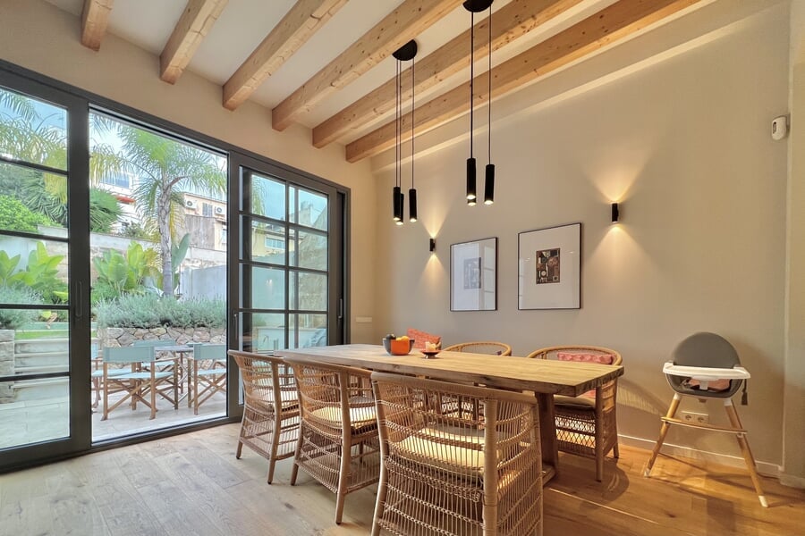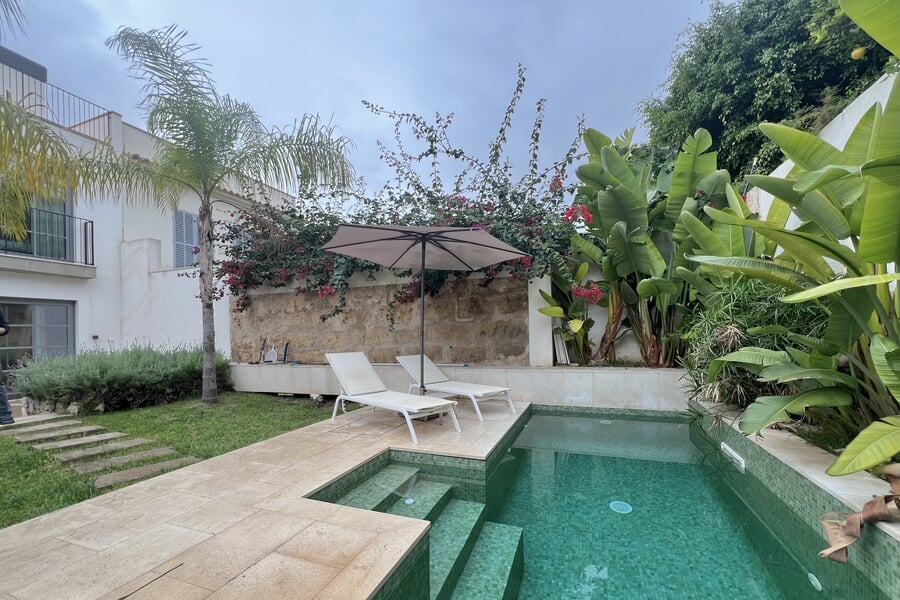 Disponible para alquiler temporal. Lujosa casa adosada nueva en la popular y encantadora zona de Son Espanyolet, a solo un corto paseo de Santa Catalina. La planta baja cuenta con un amplio salón con zona de comedor y cocina abierta, así como un aseo para invitados. En la primera planta hay tres dormitorios y dos baños, uno de ellos en suite. La zona exterior de la planta baja invita a relajarse con una hermosa piscina, una ducha exterior y dos acogedores espacios para sentarse. En la planta baja hay un despacho equipado con una silla Herman Miller y un escritorio regulable en altura. La casa adosada ha sido construida con materiales de alta calidad y diseño elegante, y se alquila completamente amueblada. Otras características incluyen calefacción por suelo radiante, aire acondicionado, lavadora y secadora.