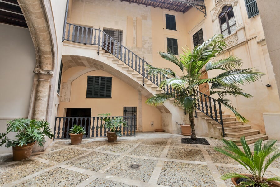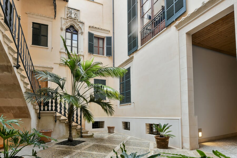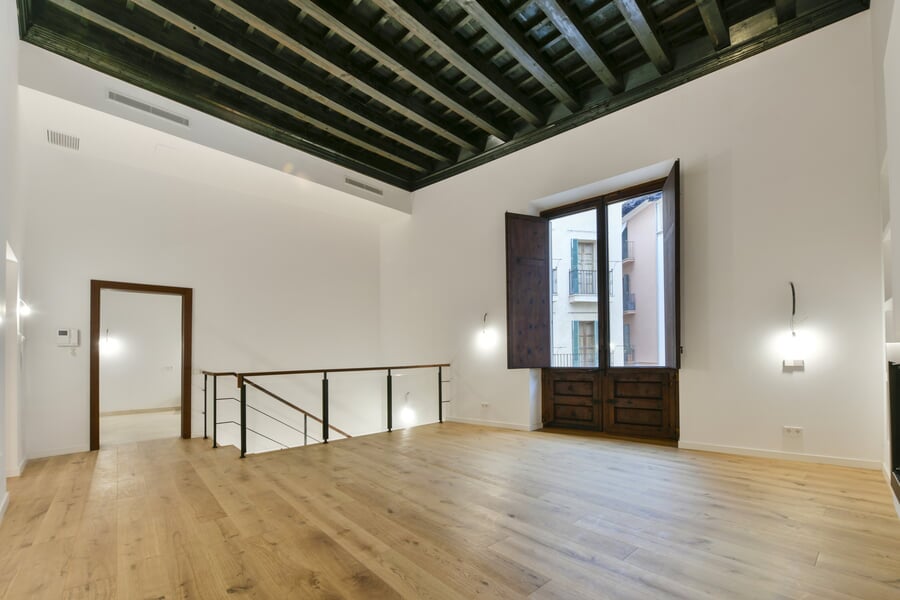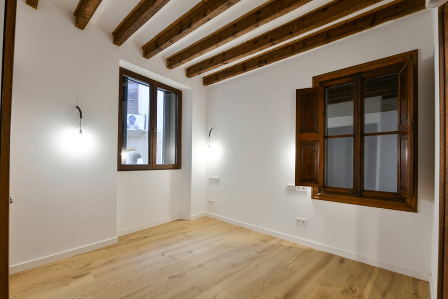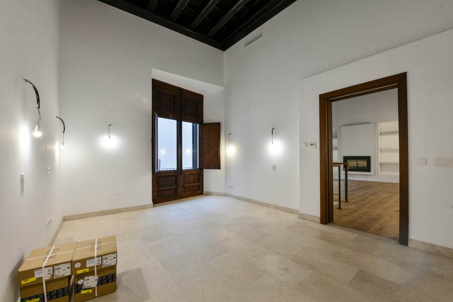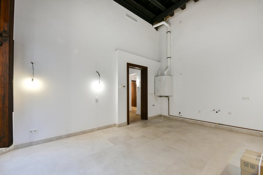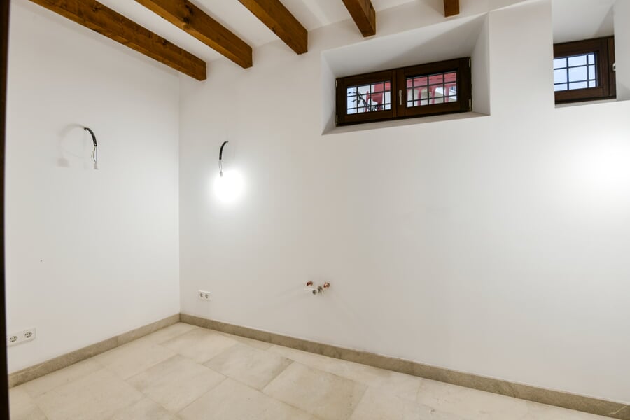 Esta exclusiva y recién renovada vivienda de 214 m² se encuentra en un histórico palacio. Distribuida en tres plantas y accesible por ascensor, combina una arquitectura histórica impresionante con el máximo confort moderno. En la bel étage le espera un amplio salón con cocina independiente, caracterizado por un elegante techo artesonado de madera y una altura de aproximadamente 5 metros. Las grandes ventanas históricas de unos 3,50 metros aportan una luminosidad excepcional. La nueva cocina de alta gama, valorada en unos 30.000 EUR, será instalada en diciembre por la empresa Cocinart Mallorca. En la planta intermedia se encuentran dos dormitorios, cada uno con su propio baño en suite y techos de vigas de madera de aproximadamente 3,80 metros, que acentúan el encanto arquitectónico del casco antiguo. La planta inferior ofrece otro dormitorio con baño, así como un despacho o cuarto de lavado independiente. Suelos de madera de alta calidad, baños de piedra y calefacción por suelo radiante en todas las estancias subrayan el alto nivel de esta singular propiedad. La vivienda incluye además un amplio y cómodo garaje, apto también para dos vehículos pequeños. Una oportunidad excepcional de disfrutar de una obra nueva en un entorno histórico en pleno corazón de Palma.