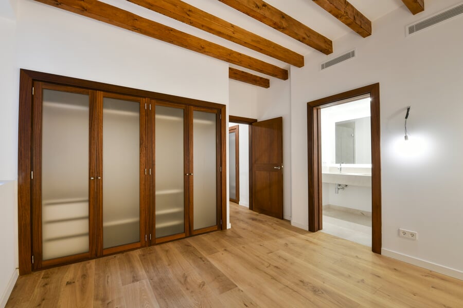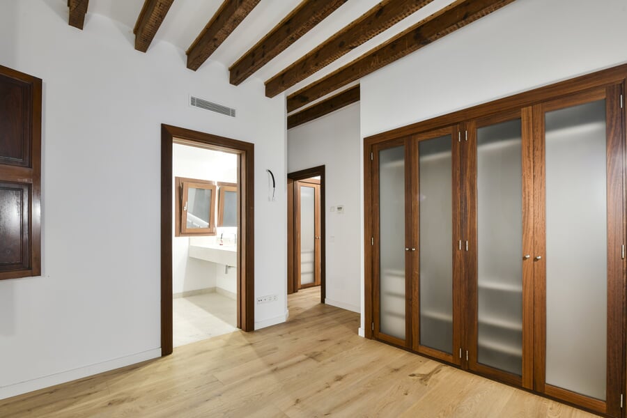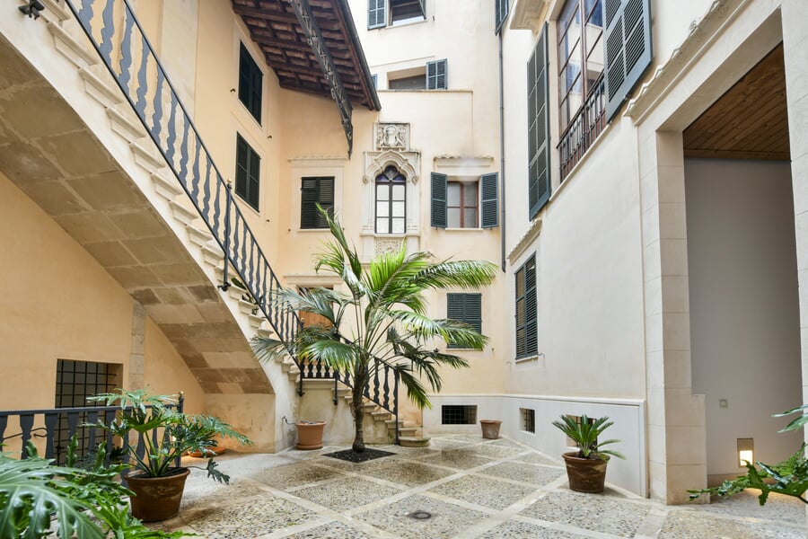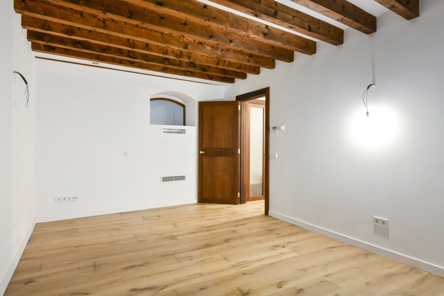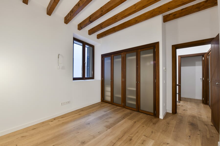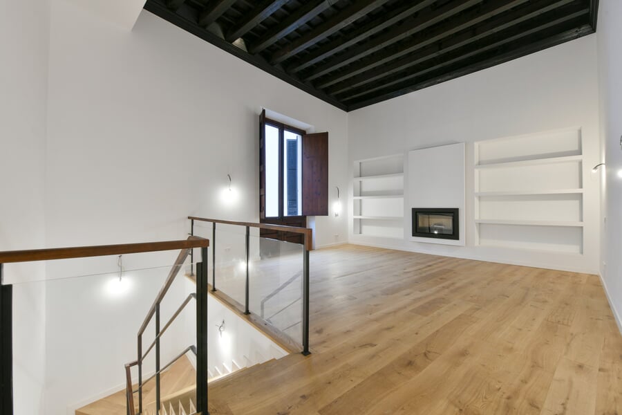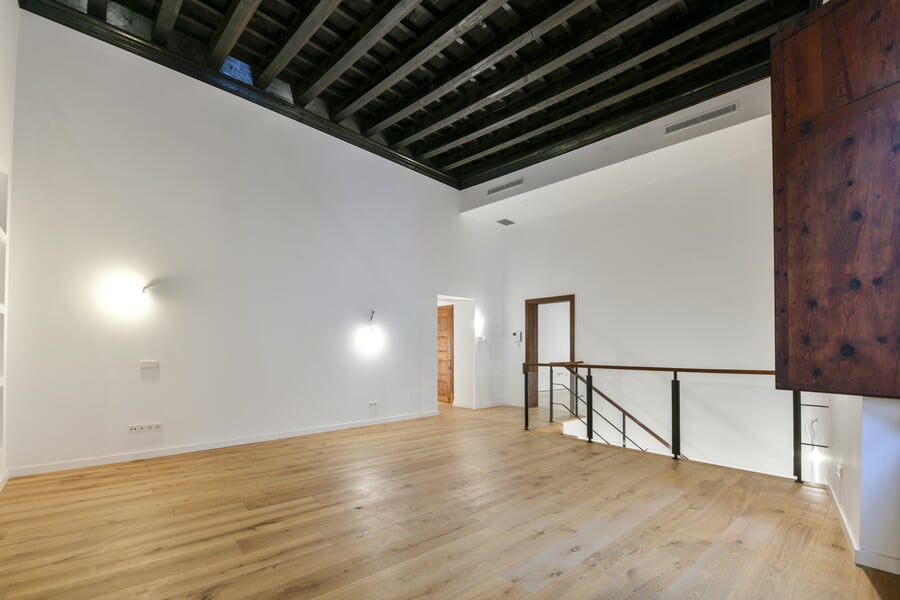 Esta exclusiva y recién renovada vivienda de 214 m² se encuentra en un histórico palacio. Distribuida en tres plantas y accesible por ascensor, combina una arquitectura histórica impresionante con el máximo confort moderno. En la bel étage le espera un amplio salón con cocina independiente, caracterizado por un elegante techo artesonado de madera y una altura de aproximadamente 5 metros. Las grandes ventanas históricas de unos 3,50 metros aportan una luminosidad excepcional. La nueva cocina de alta gama, valorada en unos 30.000 EUR, será instalada en diciembre por la empresa Cocinart Mallorca. En la planta intermedia se encuentran dos dormitorios, cada uno con su propio baño en suite y techos de vigas de madera de aproximadamente 3,80 metros, que acentúan el encanto arquitectónico del casco antiguo. La planta inferior ofrece otro dormitorio con baño, así como un despacho o cuarto de lavado independiente. Suelos de madera de alta calidad, baños de piedra y calefacción por suelo radiante en todas las estancias subrayan el alto nivel de esta singular propiedad. La vivienda incluye además un amplio y cómodo garaje, apto también para dos vehículos pequeños. Una oportunidad excepcional de disfrutar de una obra nueva en un entorno histórico en pleno corazón de Palma.
